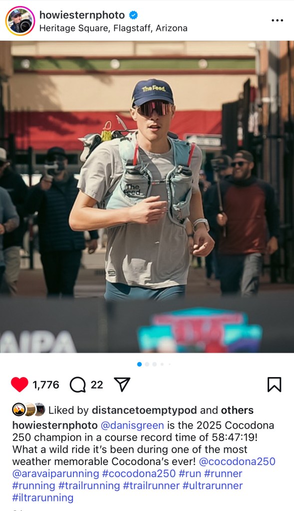 AJW was with his pal Chris Worden, co-hosting the Mountain Outpost Livestream during last year’s Cocodona and although Worden misses his studio-husband, he’s had some ultra-royalty with him including Pete Mortimer, winner of the inaugural Arizona Monster 300, Tara Dower, who set the Fastest Known Time (FKT) on the Appalachian Trail this past year. He will have on Jeff Browning, (aka Bronco Billy) tomorrow afternoon and has an open invitation for any of the finishers to come in and talk about what their race was like this year. The livestream has imploded for Cocodona with over 10,000 people watching today as Dan Green came across the finish line. The chat has been lively and Worden is the ever-steady host of the 24/7 feed, answering questions, updating viewers, and uber-supportive all the runners, whether they are front, mid or back-of-the-pack. He’s Cocodona’s Keith Dunn (live tweeter from the Barkley Marathon.)