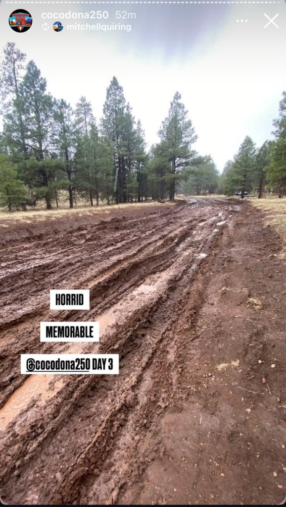 There’s nothing easy about Cocodona. But the commentators and guests and those in the live-chat spent a lot of time debating one question—what would you rather deal with, heat or cooler temps with rain and mud? Runners have been posting pictures that show fields and roads covered in thick mud as well as their shoes and pants and bodies. Most of the competitors had been preparing for heat and sun exposure in this predominantly desert race. It’s a multi-day trail race through various ecosystems and instead of unrelenting heat, runners were hit with wind, rain and temperatures dipping down into the 30’s at night. Some had crew, but others were relying on drop bags and may not have had adequate rain gear or changes of warmer clothes to take the edge off since they had been busy doing heat training and packing sun-protection gear, SPF and big hats.